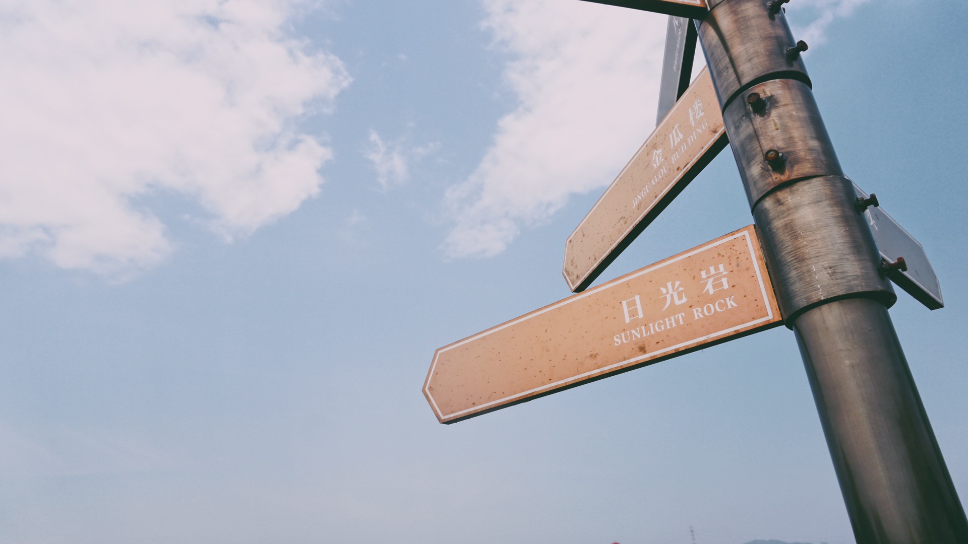 有个年轻的妈妈,抱着还在襁褓里的孩子爬到这顶上来了!她看着我惊讶的表情一下子笑了开来,“我想上来看看落日”,我也笑了。但最终还是起雾了,太阳吝啬着不想让我们看见他灿烂的样子,敷衍地撇下一团雾气,支使我们在风中凌乱的一拨人目送一只浑浊的、灰紫色球体下沉而去。