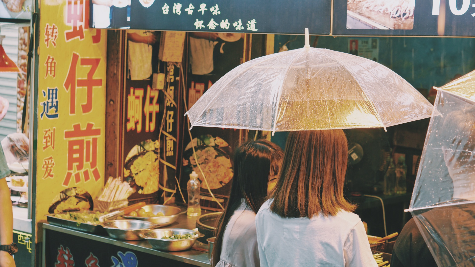 或许是因为下雨,本来也不宽敞的小路上支支吾吾地撑起了缤纷的小伞,夜晚的曾厝安比白天更热闹了,店铺里的通明暖光把升起的蒸汽都捂得热乎乎的,捧着一大杯烧仙草走在有点滑的圆石头上,墙上挂出的土味食品图片,虚了焦的拍立得,一串串的彩灯,都在缓慢地倒退而去,“晚安”,它们说。