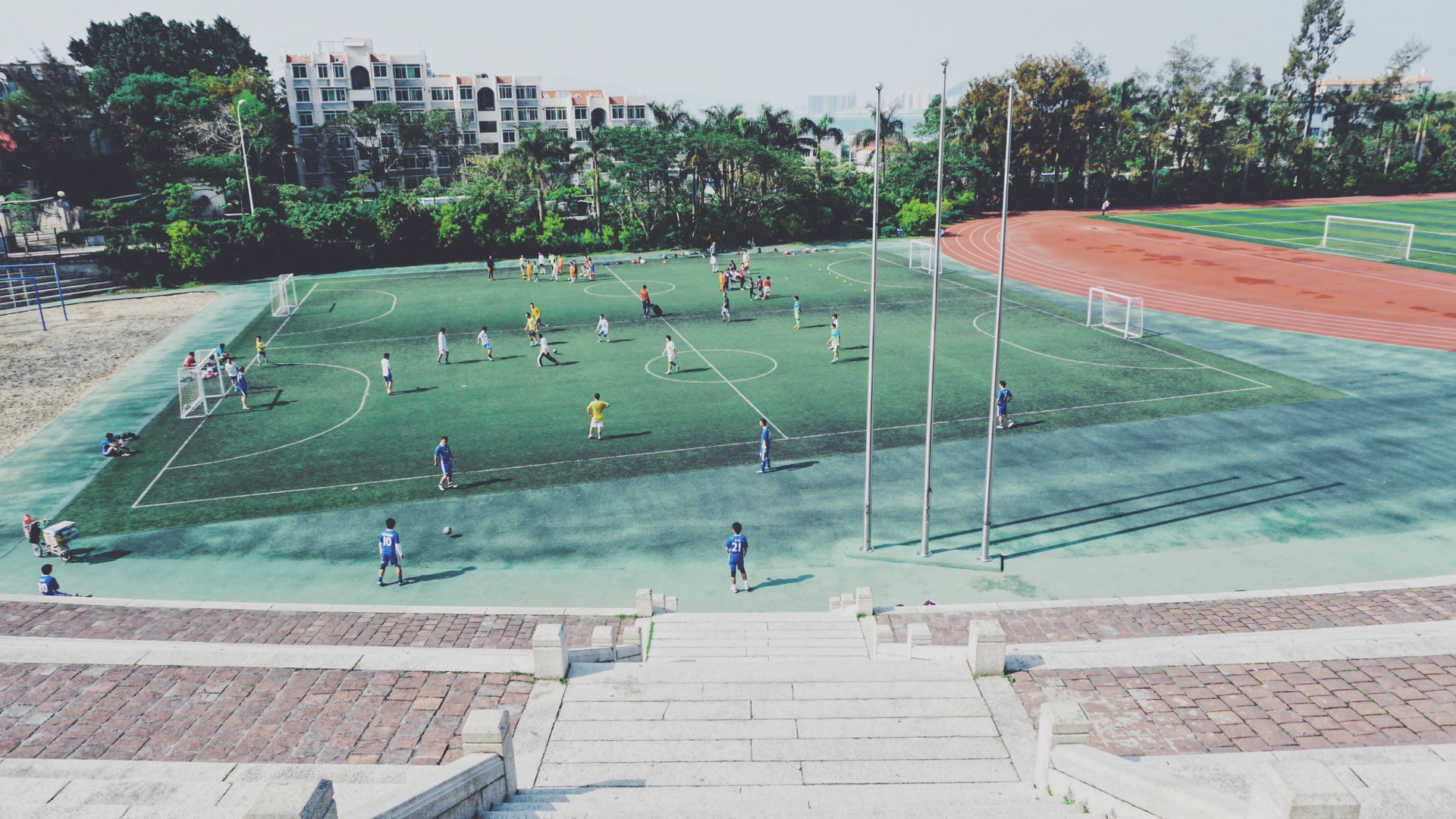我走着,走着,逆着太阳的走向,越来越往上,想要去 日光 岩上看一看日落,却无意间又被淹没在树海里鳞次栉比的橙红色屋顶吸引了,它们被树木热情地填充、占据,又被宁静的大海环抱起来,再远一点就是海对面那些林立的高楼了,那里的灰白和这边的橙红忽近忽远,就好像大海拼命要保护着这里,不让它触碰城市里的喧嚣。
