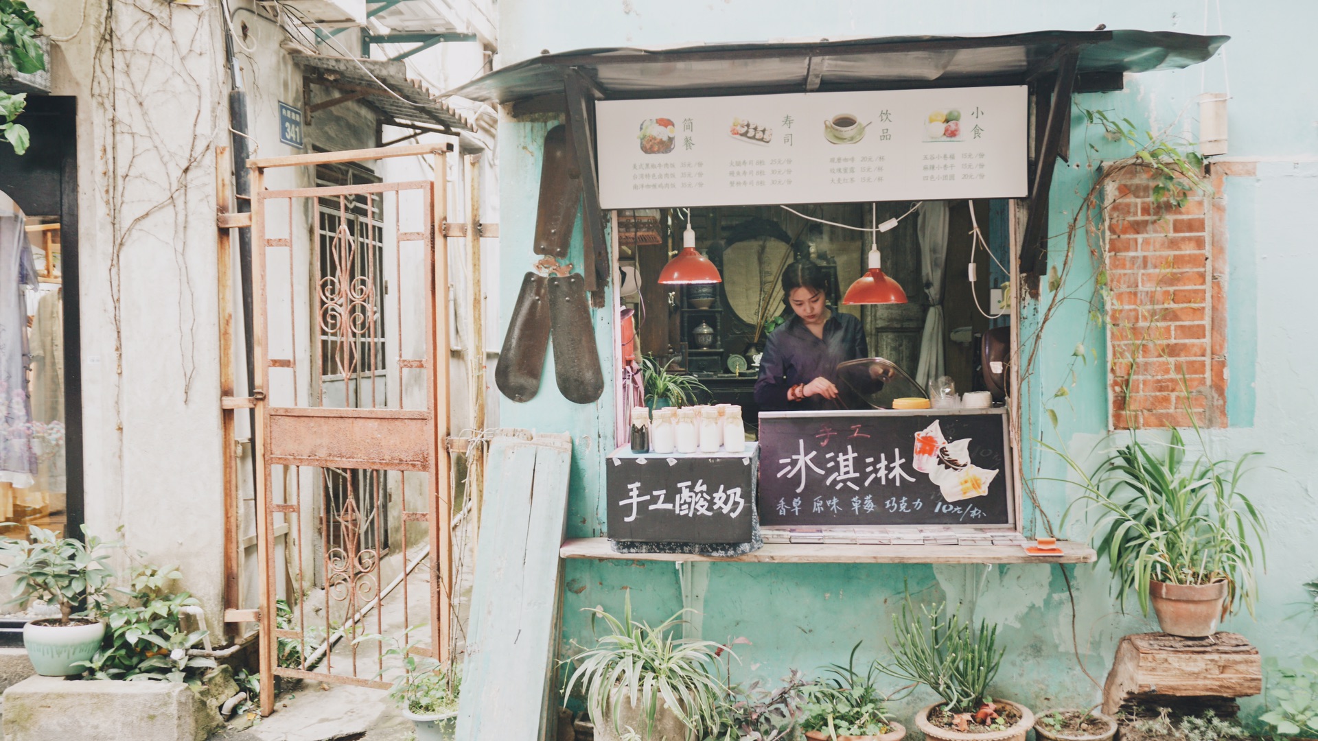 这里的店铺五花八门,左手边是一家贴满便利贴的烤吐司店,右边却传来尤克里里的演奏声,再往前走,姜母鸭牌匾下的围裙小哥正要抬手招呼你,而那边转弯处卖明信片的店里,不断又有女孩子笑闹着结伴而归。